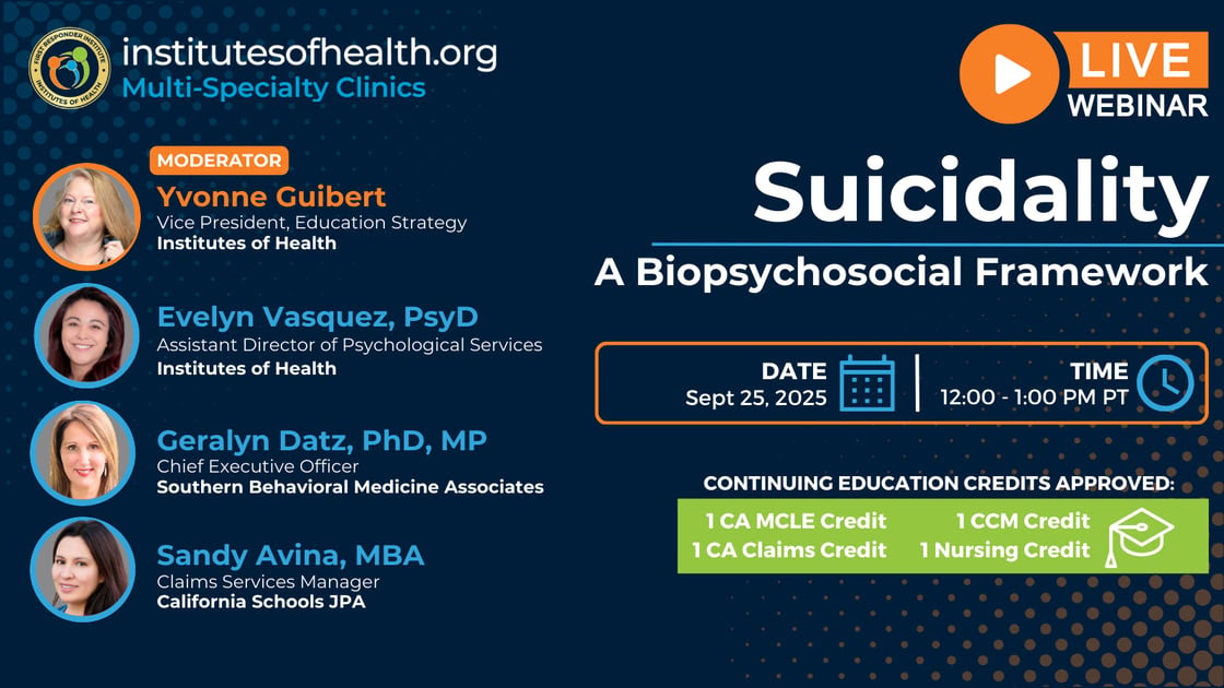 · Dr. Evelyn Vasquez, PsyD, Assistant Director of Psychological Services, Institutes of Health · Dr. Geralyn Datz, PhD, MP, CEO, Southern Behavioral Medicine Associates · Sandy Avina, MBA, Claims Services Manager, California Schools JPA